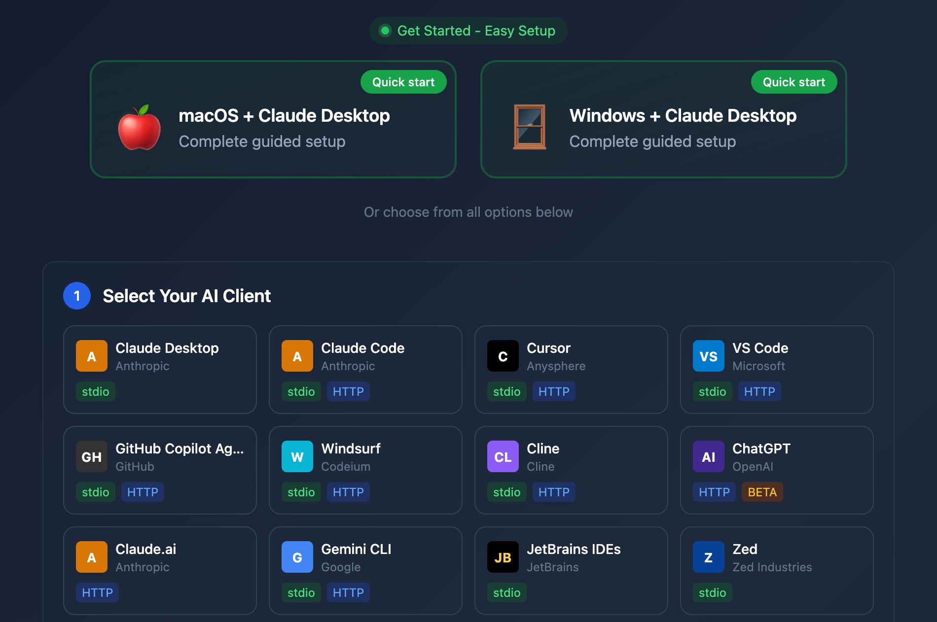 Le projet est compatible avec de nombreux clients (Claude Desktop, Claude mobile, ChatGPT, Gemini, Copilot…) et propose plusieurs méthodes d’installation : Docker, configuration en local etc.