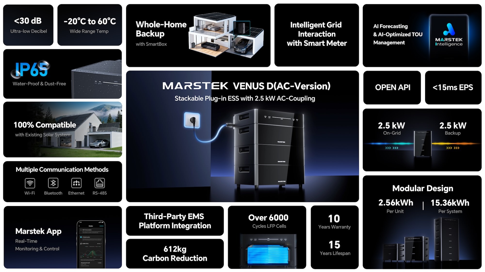 Marstek présente deux nouvelles batteries solaires : Venus D (AC) et Venus G