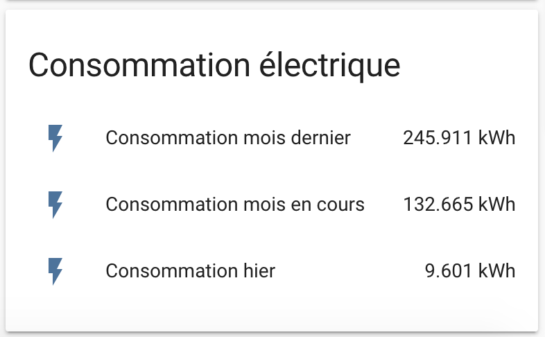 Dommage en revanche de ne pas avoir la consommation du jour ou de la semaine. C’est une limitation pour le moment qui est dû à Enedis et non le composant en lui même car en allant sur le site web, on ne trouve pas l’information non plus.
