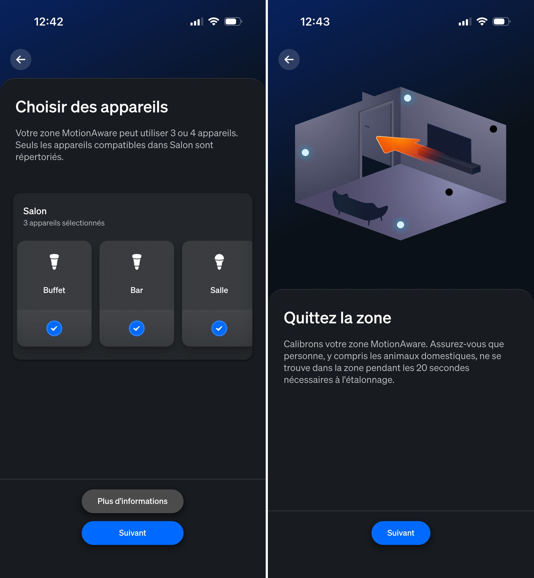 J’ai testé Motion Aware dans ma pièce de vie au rez-de-chaussée, et je dois dire que je suis plutôt convaincu. J’ai suivi le processus d’installation dans l’application (qui est très guidé), et ça a fonctionné instantanément. Depuis quelques semaines que je l’utilise au quotidien, je n’ai eu aucune fausse détection ni aucun raté.