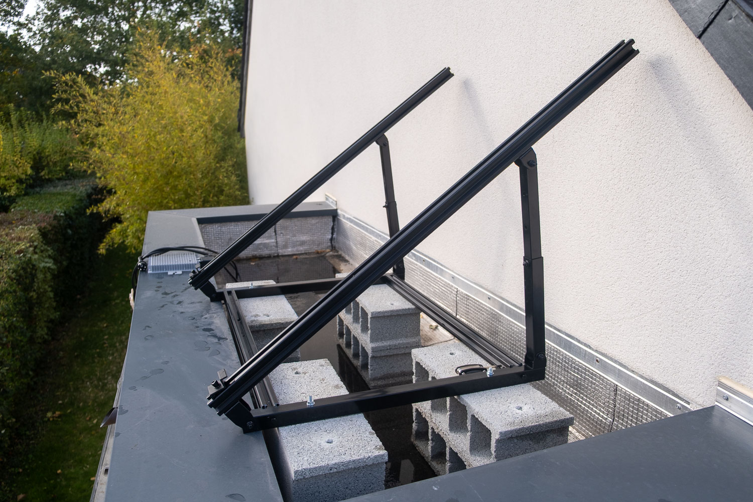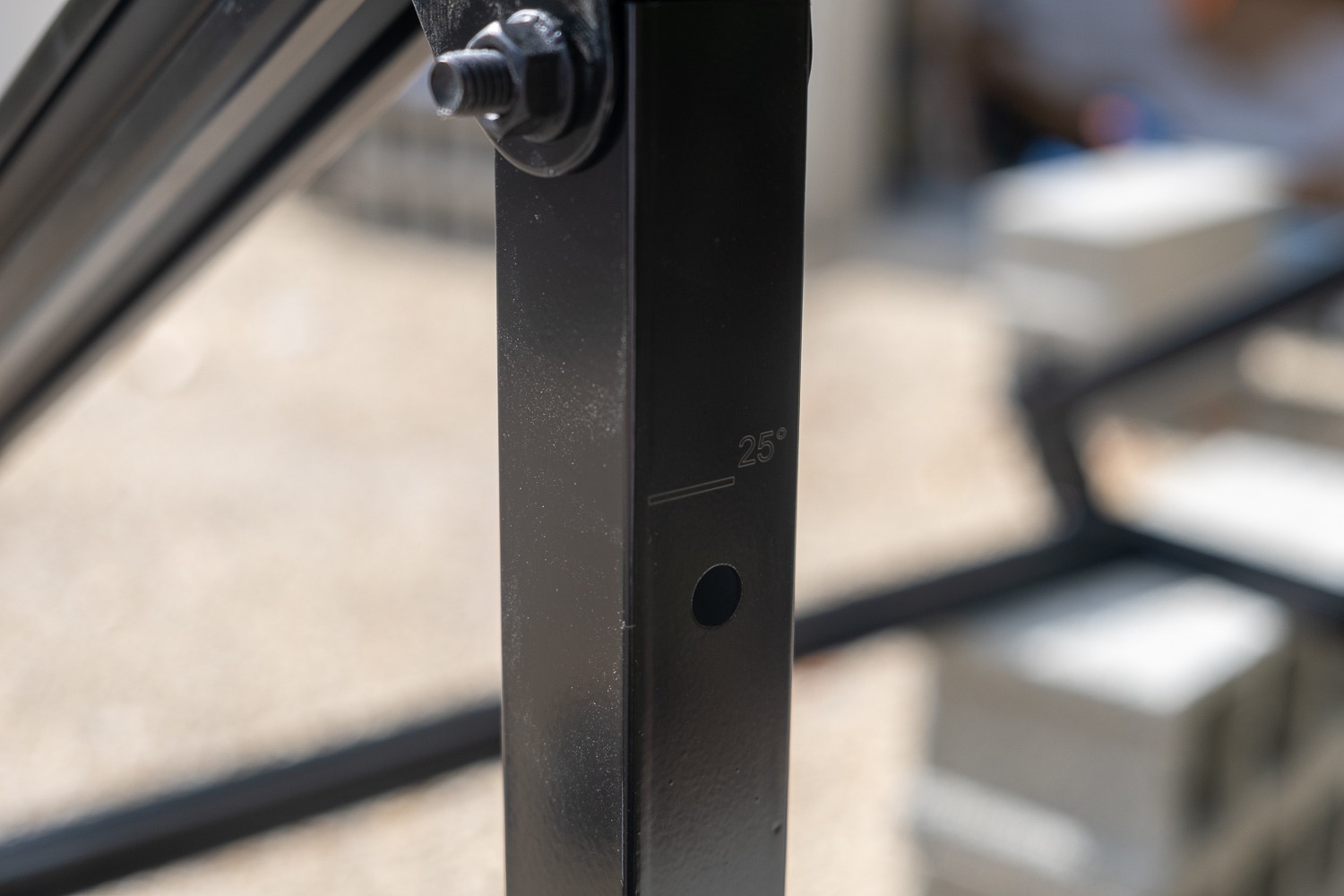 L’orientation est ajustable selon la saison, avec trois angles possibles (25, 35 et 45 degrés) exclusivement en mode paysage. Une fois assemblés, on se retrouve avec des supports solides et bien pensés.
