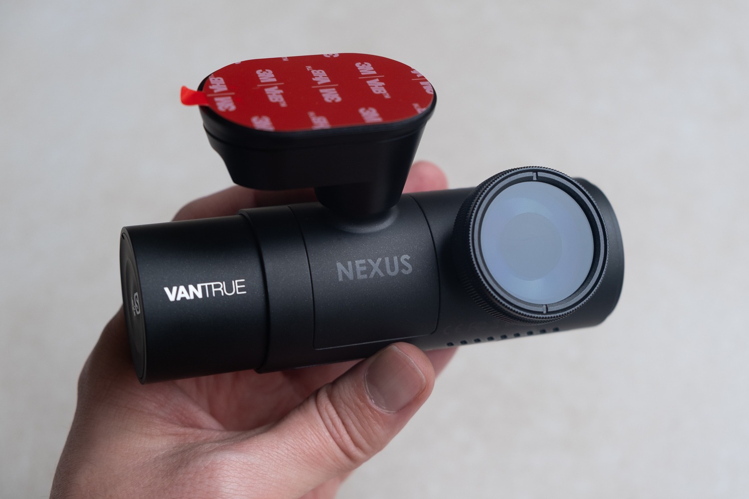 L’installation de la Vantrue N4 Pro S est plutôt simple et rapide. Le support se fixe sur le pare-brise à l’aide d’un adhésif 3M, un peu comme un badge de télépéage. Une fois collé, la dashcam vient se clipser sur le support de manière très stable. Le gros avantage, c’est que la caméra reste détachable : on peut laisser le support en place tout en retirant facilement la dashcam si besoin.