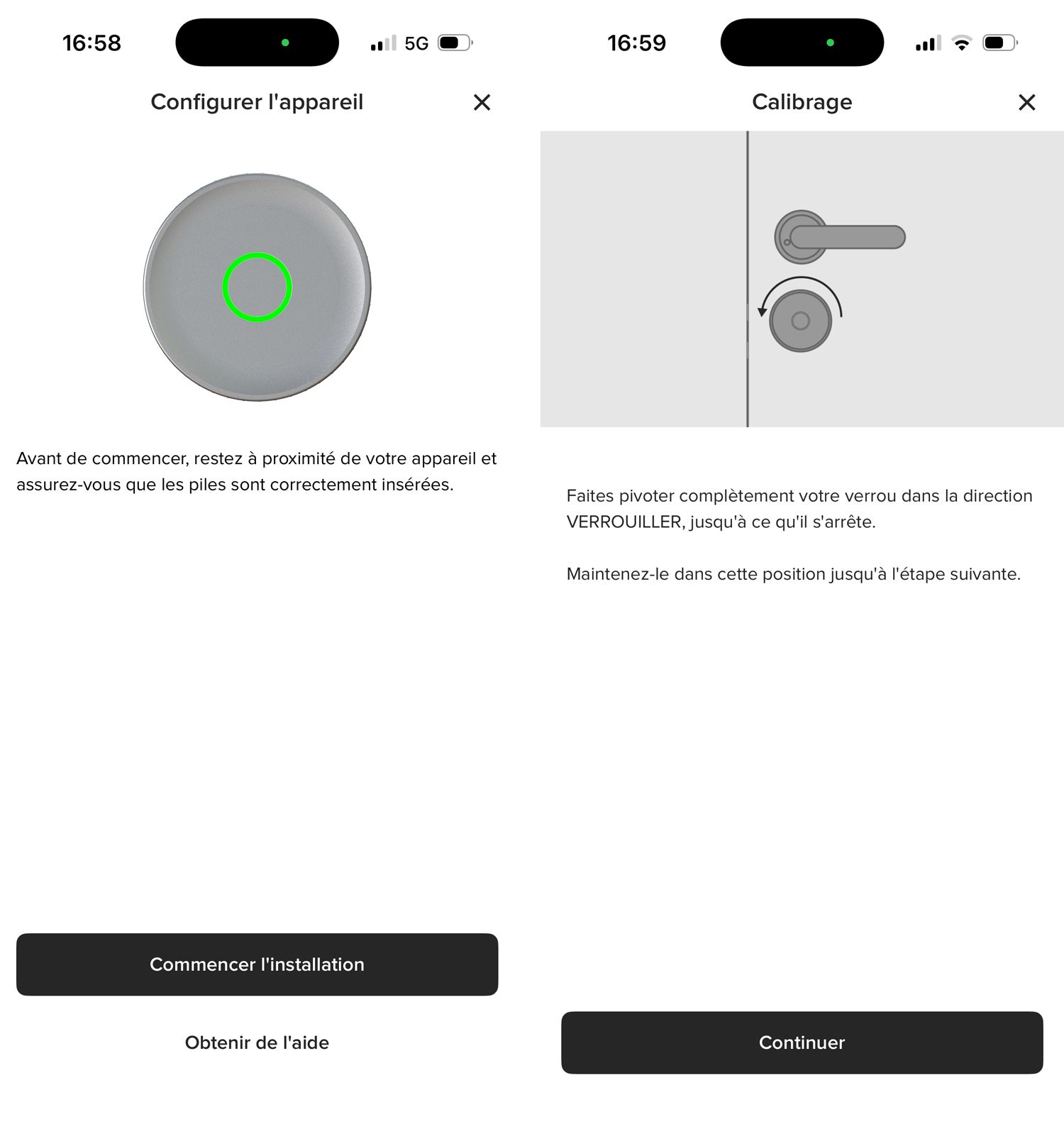 Une fois en place, on passe au calibrage via l’application Yale. L’app vous guide pas à pas pour que la serrure identifie les positions ouverte et fermée. À noter que j’ai dû refaire ce calibrage une fois après quelques semaines d’utilisation, la serrure avait un peu perdu ses repères entre les ouvertures automatiques et les manœuvres manuelles occasionnelles. Un simple recalibrage a résolu le problème.