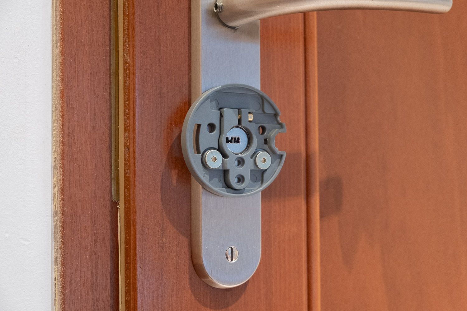 L’installation est franchement l’un des points forts de ce produit. Pas besoin d’être bricoleur, le montage est accessible à tout le monde. Le principe : on vient fixer une petite platine de montage directement sur le cylindre existant, puis la serrure vient se clipser dessus. C’est simple, rapide et bien pensé.